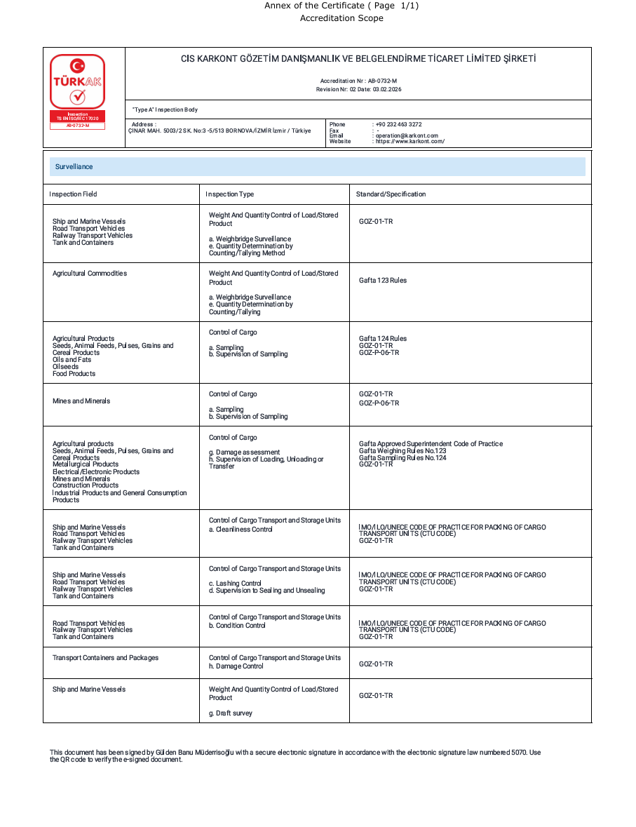 A Tipi Uluslararası Gözetim Şirketi Belgesi