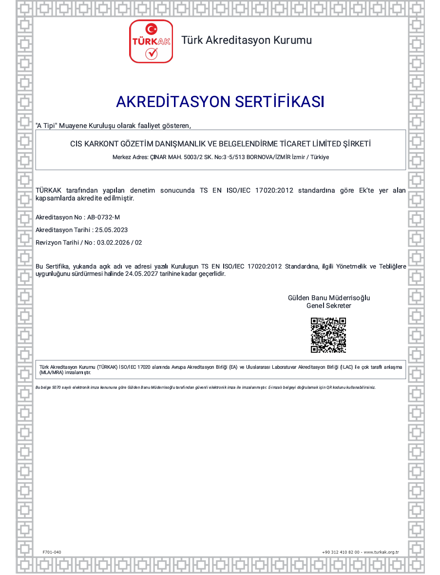 A Tipi Uluslararası Gözetim Şirketi Belgesi